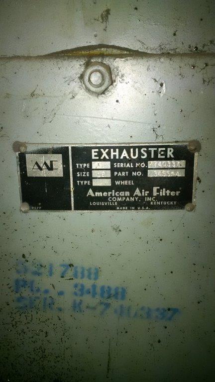 - 25 HP AAF Exhauster, Size 19, Rated for 8,500 CFM