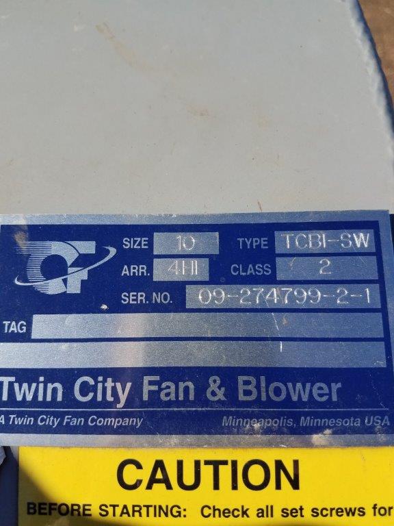 - 10 HP Twin City Fan & Blower, Size 10, TCBI-SW