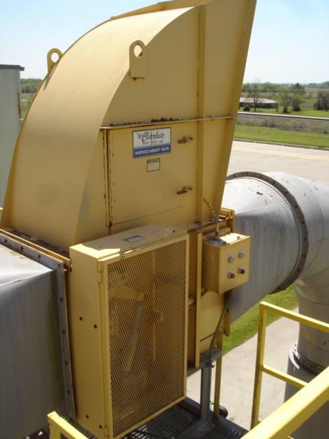 17,200 CFM @ 7.17:1 Air-To-Cloth Ratio 2,397 Sq. Ft. Cloth Area from (188) 10′ Long Bags Reverse Pulse Cleaning system for extended filter life 7.5 HP PD pump supplies air for the filter cleaning system Walk-In Clean Air Plenum 60 degree Hopper to Rotary Airlock Discharge Steel Support Structure Explosion Relief Panels System Controls with Soft Start Inlet Vane Damper Connecting Ductwork from Fan to Collector 75HP Twin City Fan RTF-SW 360 Blower rated for 17,200 CFM @ 20″ * Note Price Includes Take Down and Truck(s) Loading