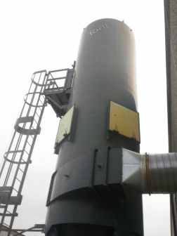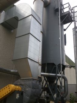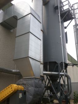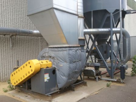 20,000 CFM @ 9.8:1 Air-To-Cloth Ratio 2,030 sq. ft. filter area from (156) 10′ long bags Reverse Pulse Cleaning from 3HP PD Pump AN-16 Rotary Airlock Safety Ladder with Catwalk Steel Support Structure Explosion Vents 75 HP New York Blower Size 27 BI Fan rated for 20,000 CFM @ 12″ Connecting Ductwork from Collector to Fan Electrical Control Panel