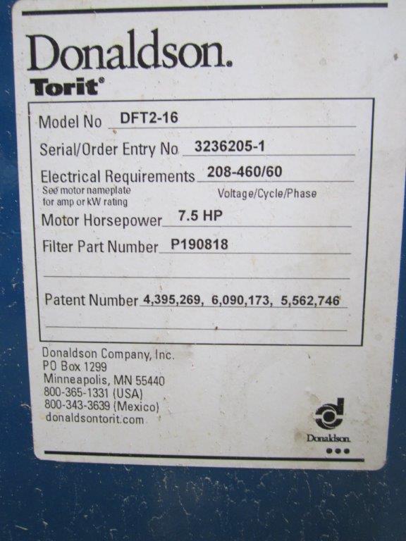 Donaldson Torit 2-16 Used Dust Collector. Previously Used for (and Currently Set Up for Thermal Spray)