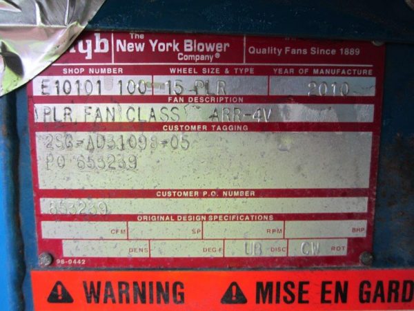• 7.5 HP New York Blower/Motor Rated for 4,000 CFM @ 7″ S.P.
