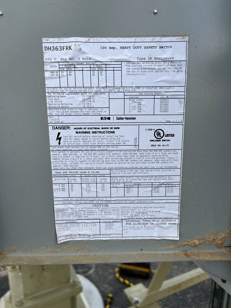 - (96) 8′ Long filter bags for a total of 954 Sq. Ft. Media. Bags replaced last in 2019