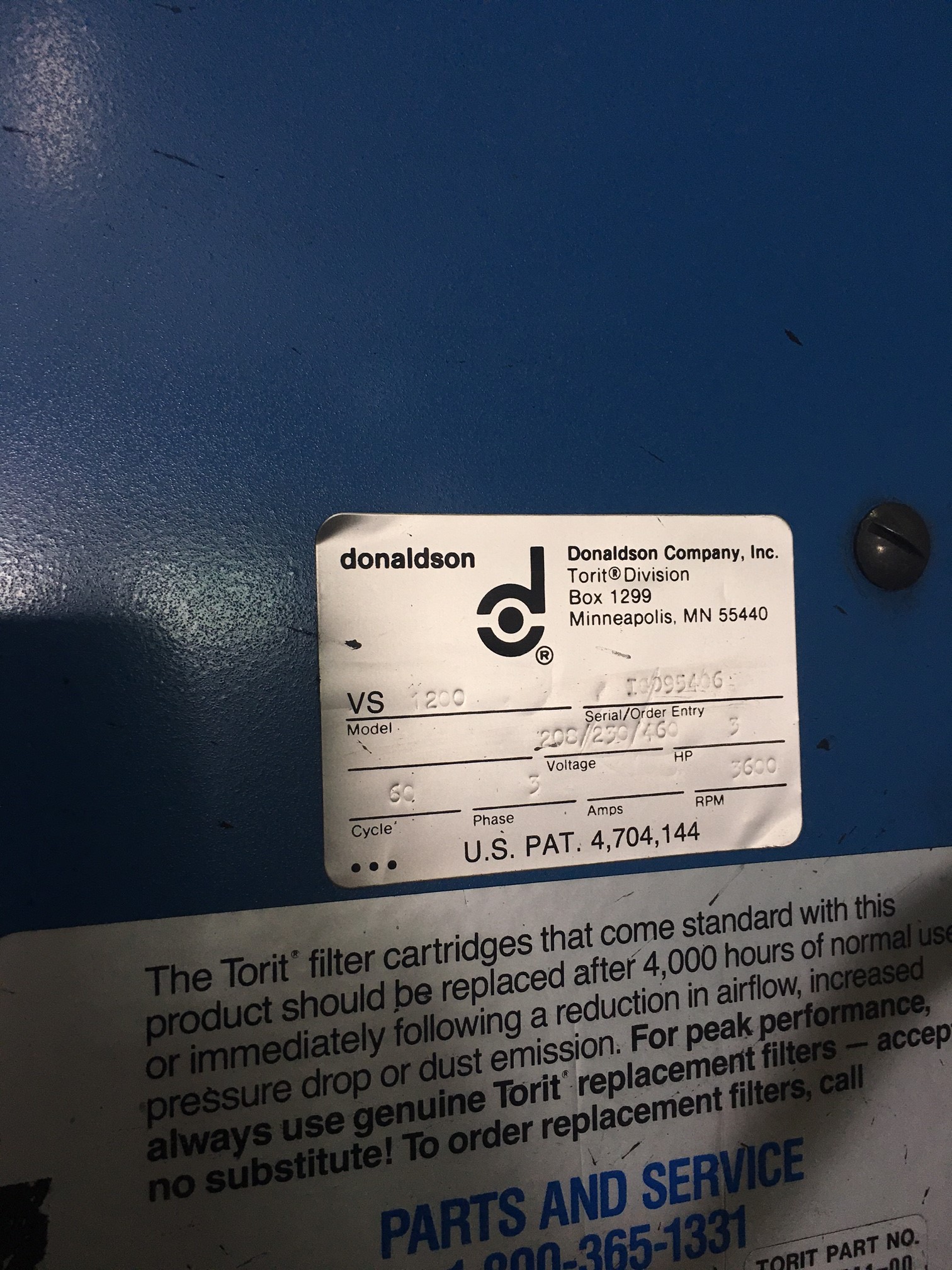 Donaldson Torit VS-1200 Used Cartridge Dust Collector