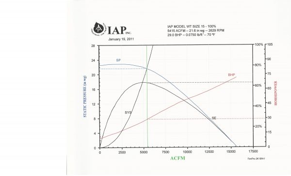 Note: See Fan Curve Photo Current Set Up 5,500 CFM @ 8″ S.P. 15″ Inlet Diameter 1773 RPM 230/460V 3 PH