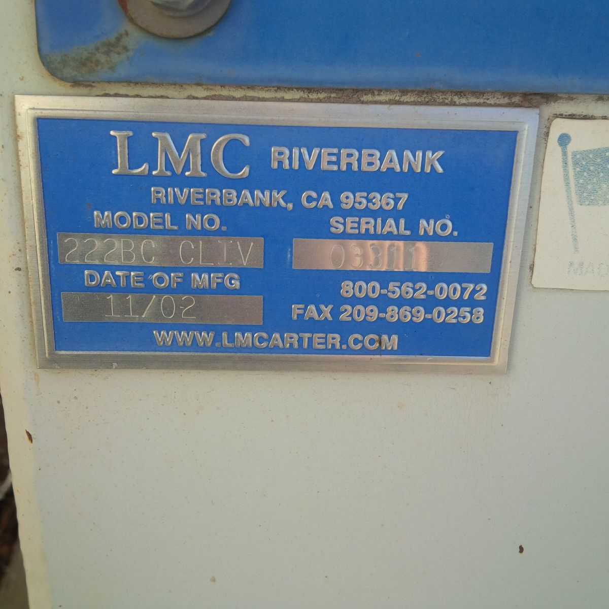 - 30HP LMC Model 222BC CLIV Set at 10,000 CFM with 12″ S.P.