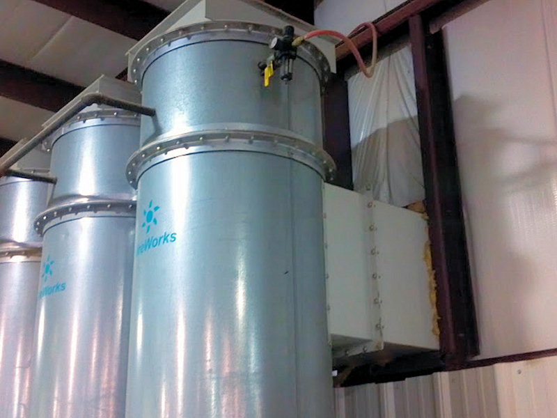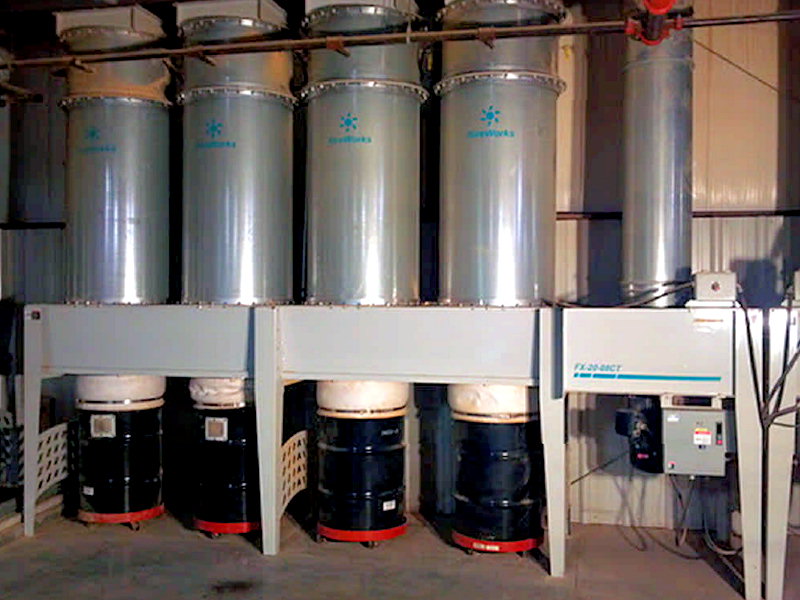 6,400 CFM @ 7.3:1 Air-To-Cloth Ratio 880 Sq. Ft. of Media from (8) Cartridge Filters Reverse Pulse Filter Cleaning System from Shop Air Explosion Vents HEPA After Filters Barrel Boots & Clams (Barrels not Included) Discharge 20 HP TEFC Motor/Blower