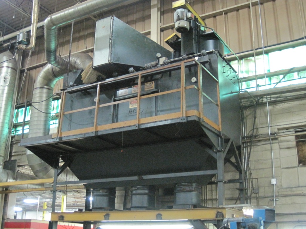 12,000 CFM @ 2:1 Air-To-Cloth Ratio 6,075 Sq. Ft. Cloth Area from (27) Cartridge Filters Automatic Pulse Clean System with differential pressure guage and sequencing timer in enclosure Three Hopper Material Outlets with drum covers Steel Support Structure 20 HP Northern Fan – Top Mounted After-filter assembly 575v electrics FOB: ON (3) Available