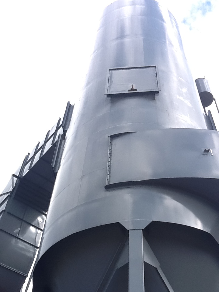 55,000 CFM @ 9.37:1 Air-To-Cloth Ratio 5,869 Sq. Ft. Cloth Area from (376) 12′ Nomex Bags Automatic Pulse Cleaning System with Rotating Arm and PD Pump Walk-In Clean Air Plenum Access Ladder & Service Platform Single Cone Hopper with Rotary Airlock Discharge Steel Support Structure