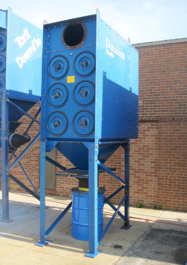 6,000 CFM @ 2:1 Air-To-Cloth Ratio 3,048 Sq. Ft. Medai from (12) Cartridges New AirMax Flame Retardant Filters Automatic Pulse Clean System with Photohelic pressure switch/gauge and sequencing timer in enclosure Single Hopper Material Outlet with Drum Cover Steel Support Structure 15HP Top Mount Blower capable of 6,000 CFM Motor Starter & Disconnect FOB: OH