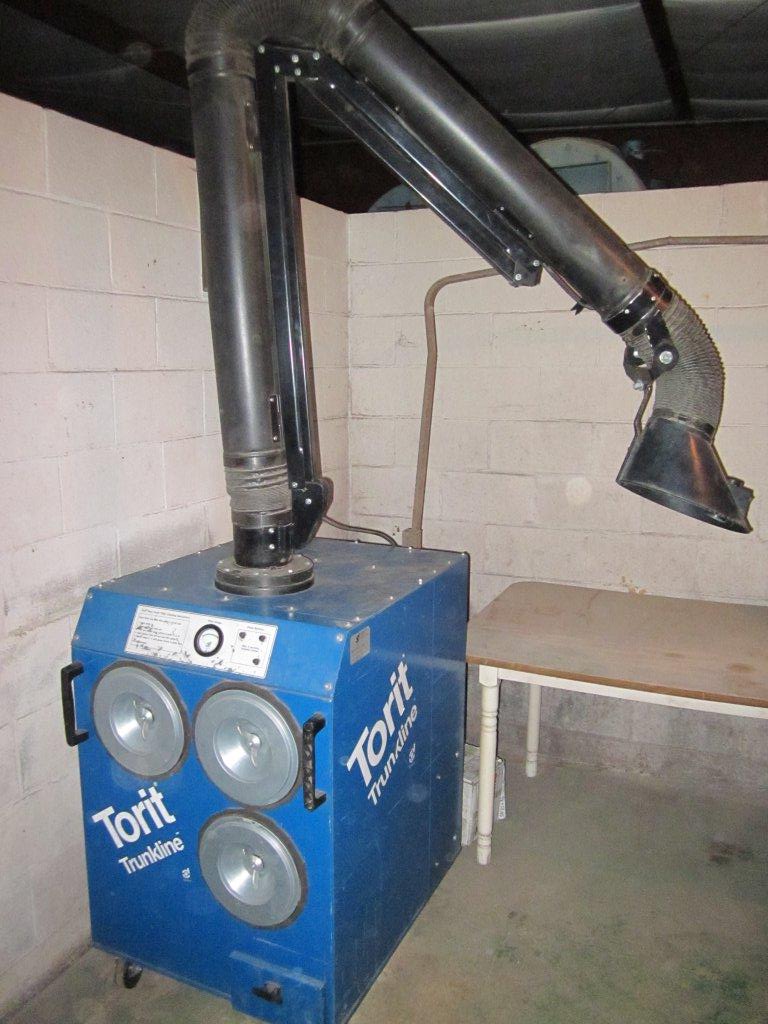 750 CFM @ 2.43:1 Air-To-Cloth Ratio 309 Sq. Ft. Filter Area 1.5 HP TEFC motor Built-in pulse filter cleaning system Push buttons conveniently located on front of unit and on fume hood “Plug and go” operation 115/60/1 Voltage Extraction arm: 6 in x 10 ft Hood-mounted light with switch (3) Cartridge filter unit Fully assembled and wired Fits easily through standard doorway