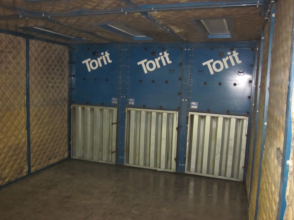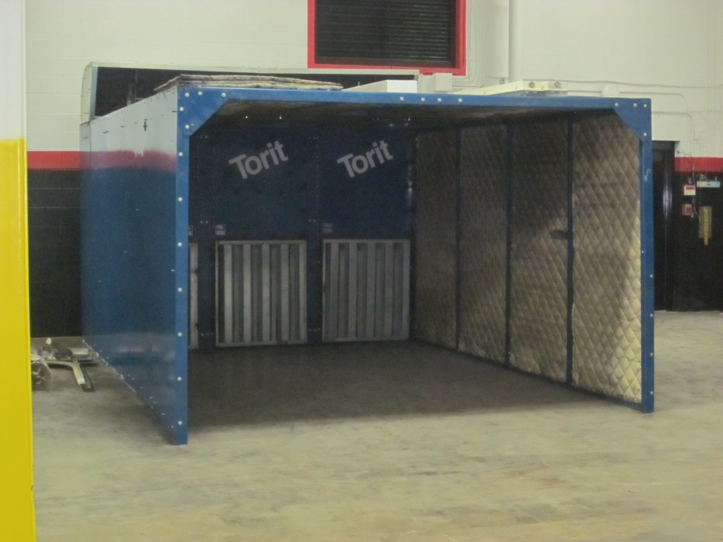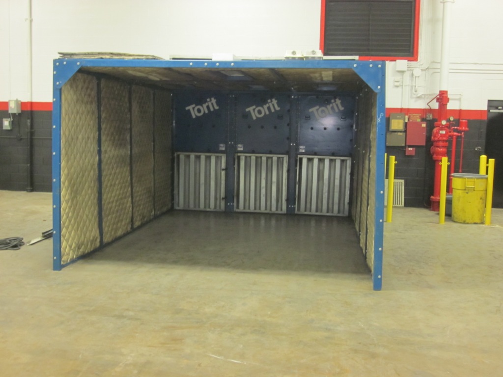*** (12) AVAILABLE AT THE SAME LOCATION *** New in 2002 (3) ECB Power Modules (18) New Airmax Premium Media Cartridge Filters (fire retardant) (3) 5HP Power Pack Blowers Double Depth Booth Enclosure Silver Acoustical Panels (3) Light Fixtures in ceiling Dust Drawers for collected material Regain Air Duct Section deflects filtered exhaust air back towards front of booth Booth Dimensions: 11’3″ wide X 7’6″ high (87″ at opening) X 15’8″ deep Total CFM rating: 11,700 CFM Air Velocity at face of booth: 140-160 fpm Automatic Pulse Clean, PLC Controlled, w/after-shift cleaning Units will be cleaned, checked and tested – New filters installed Controls wired 460v 3ph. *Price includes disassembly & truck loading FOB: OH
