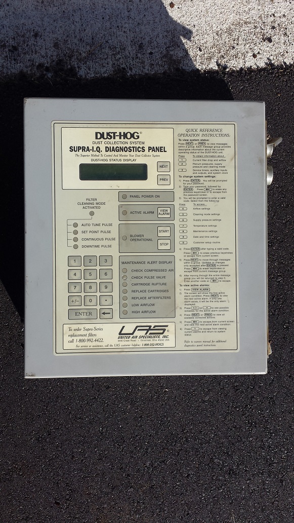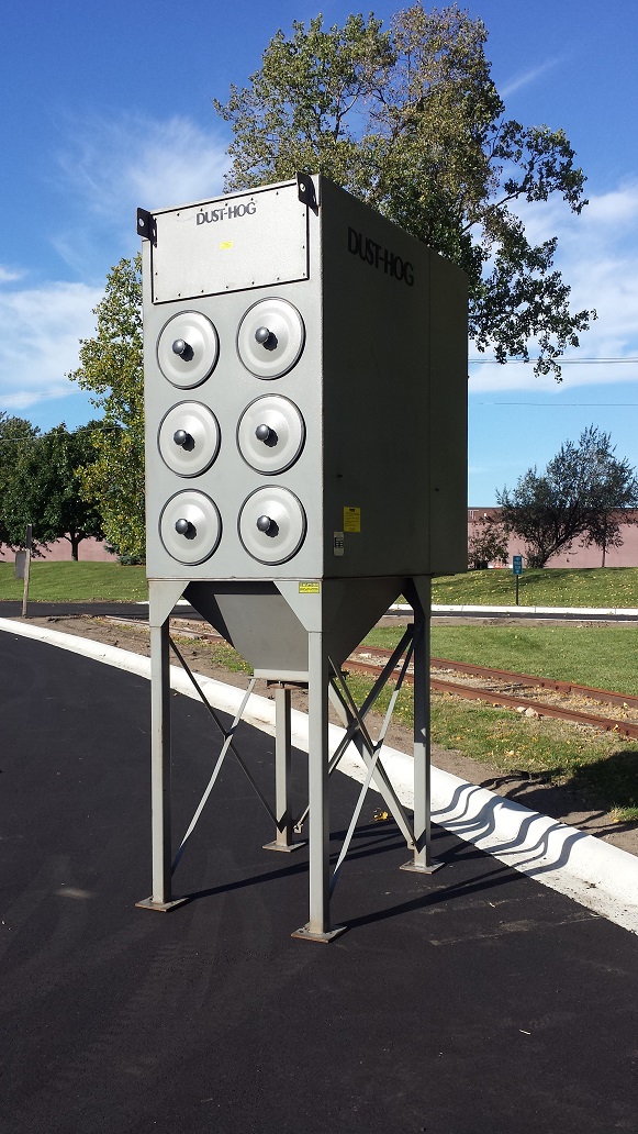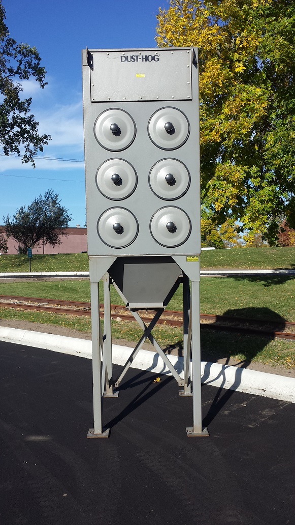4,000 CFM @ 1.47:1 Air-To-Cloth Ratio 2,712 Sq. Ft. Filter Media from (12) Cartridges 10 HP motor/blower rated for 4,000 CFM @ 10″ Reverse Pulse Filter Cleaning Pulse Control Timer Board and Pressure Gage New or Cleaned Filters Drum Lid Exhaust Damper Exhaust Silencer Support Legs for 55 gal. Drums