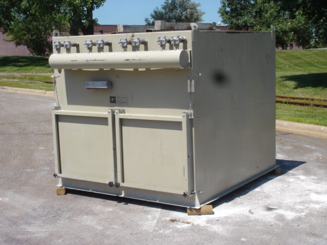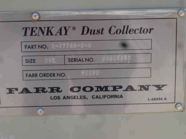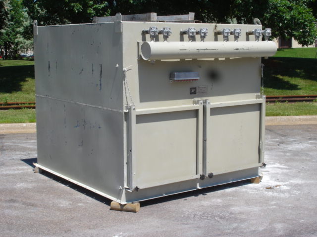 6,000 CFM @ 1.3:1 Air-To-Cloth Ratio 4,520 Sq. Ft. Cloth Area from (20) Cartridge Filters Reverse Pulse Filter Cleaning System NEW Filters Timer Board and Pressure Gage Hopper Drum Lid Support Legs 15 HP motor with BC-SW 182 Fan Rated for 6,000 CFM @ 11″