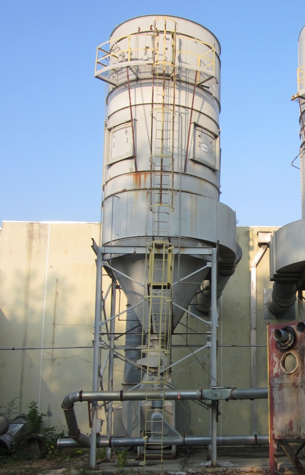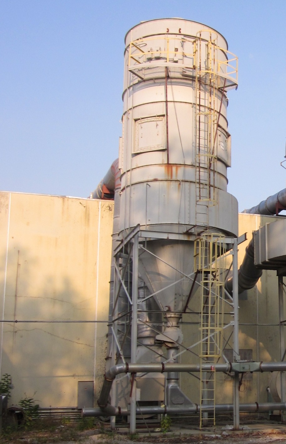 50,000 CFM @ 8.6:1 Air-To-Cloth Ratio 5,750 Sq. Ft. Cloth Area from (448) 10′ Long Bags Automatic Reverse Air Filter Cleaning System with integral blower in Clean Air Plenum and rotating arm. Explosion Vents Pyro-tech Fire Suppression system Walk-In Clean Air Plenum Caged Access Ladder & Service Platform Single Hopper Outlet with Rotary Airlock Discharge Steel Support Structure 200 HP Koger Blower capable of 50,000 CFM Benshaw Soft Start in enclosure New in 1994 *Price includes dismantling & truck(s) loading FOB: OH