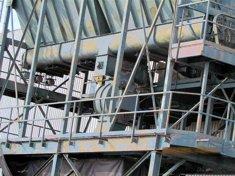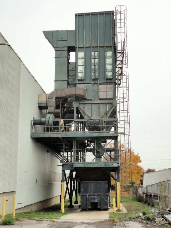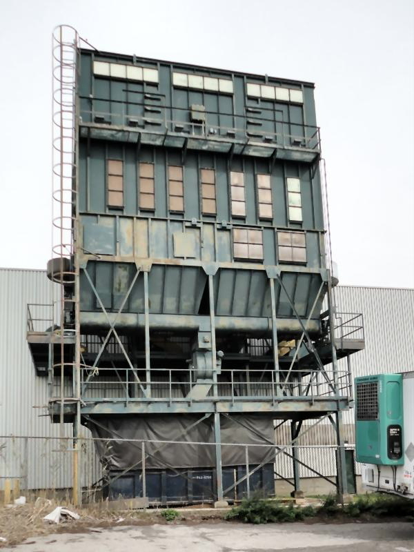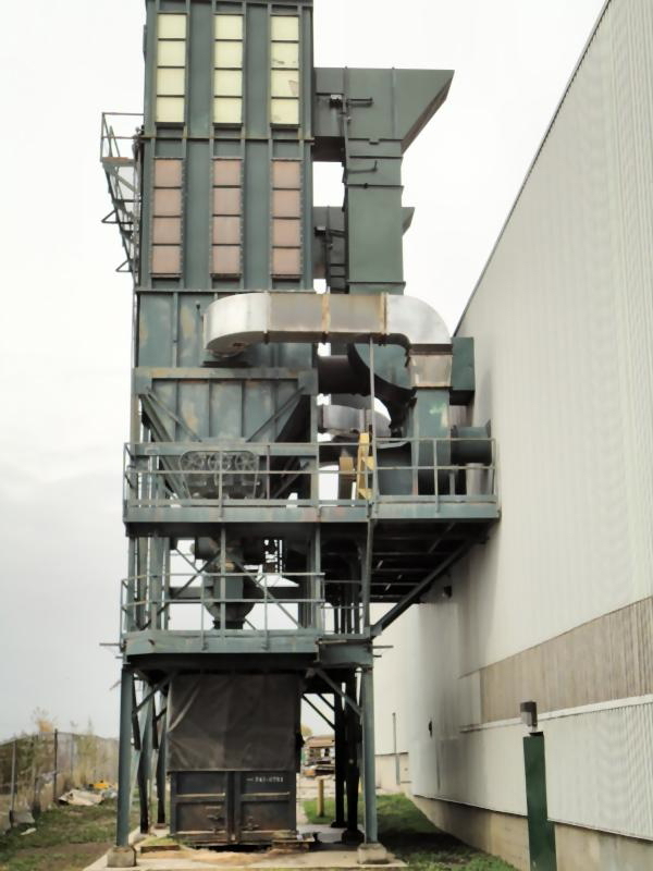 60,700 CFM @ 6:1 Air-To-Cloth Ratio 10,126 Sq. Ft. Cloth Area from (645) 10′ Long Filter Bags Reverse Pulse Filter Cleaning from Shop Air Supply Explosion Vents Steel Support Structure Safety Service Platforms and Ladders 36″ Rotary Air Lock discharges to (6) Screw Conveyors + (1) Cross Feed Screw Conveyor System is controlled by PLC with Starters for (4) Blowers, Air Lock, Augers, Pulse Control System is powered by (4) Zoned Material Handling Fans at 100 HP, 100 HP, 50 HP, 40 HP Respectively Currently wired 575 V 60 Cy. 3PH Professional Dismantling and Transportation Available. Call For Quote